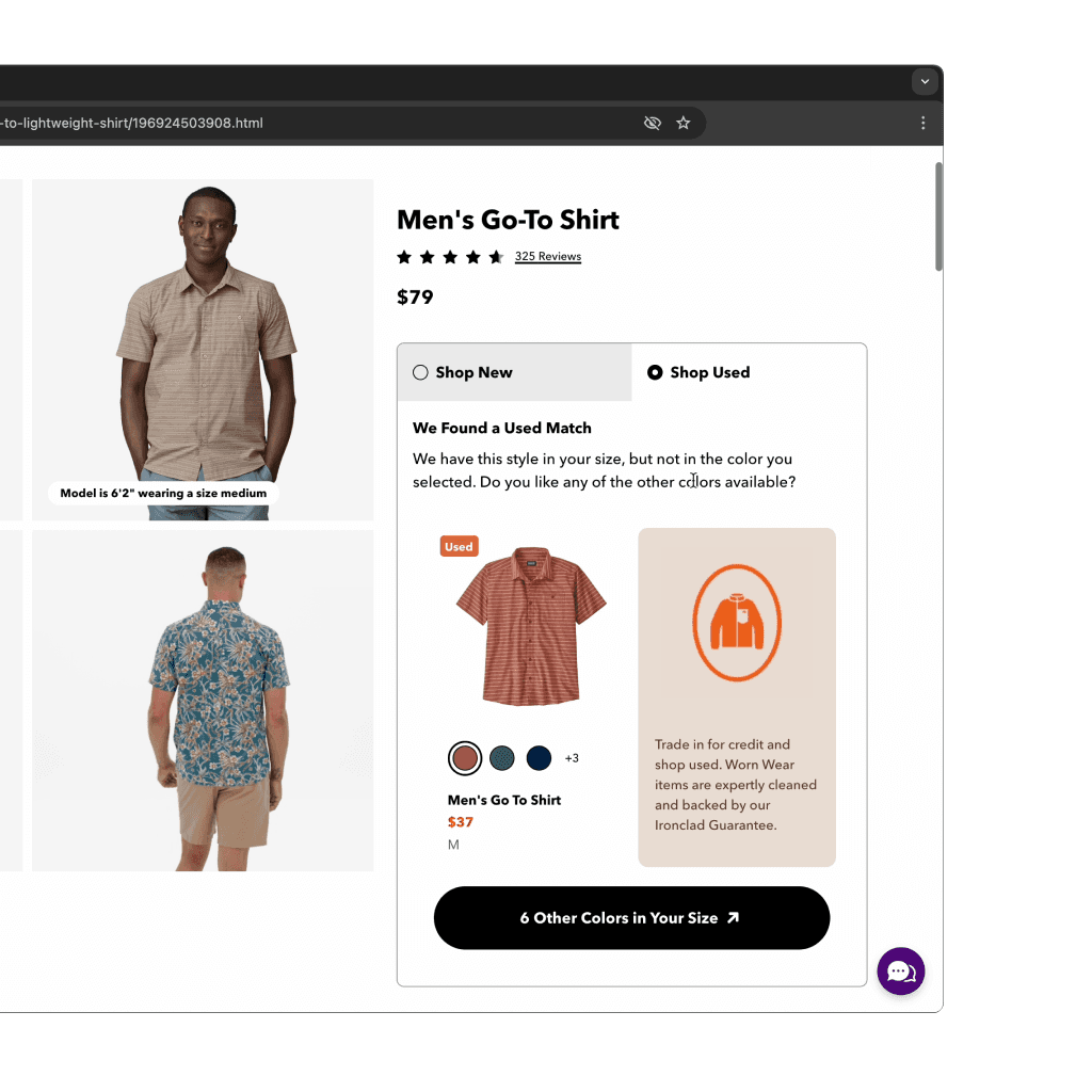 I designed, tested, and delivered specs for a widget to sell used items on Patagonia.com, delivering a 27% conversion lift and 4.81% decrease in return rates for resale items. This widget was also designed for reuse, giving future brands a turnkey solution for resale on mainline.