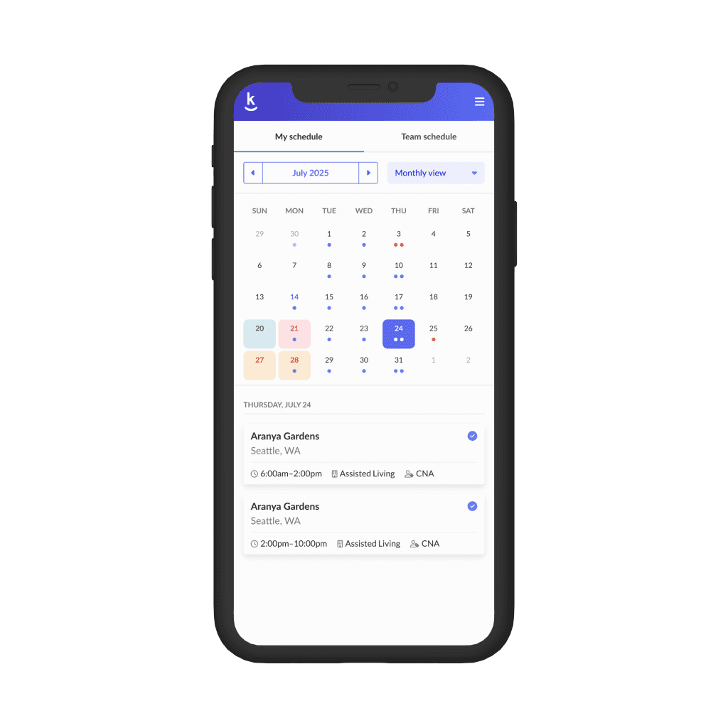 Before, workers used to have to reference their schedule in a vertical, ever-scrolling list view. Now, they can view their schedule in a familiar monthly calendar format. They can also see if they've been accepted or rejected for shifts at a glance.
